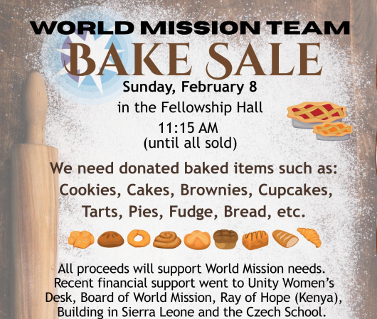 - Sunday, February 1, 9:30am: Home Church Mission Lovefeast prelude.